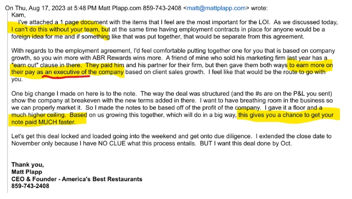 Matt made several assurances to get Note payments tied to profits. None of them were kept.